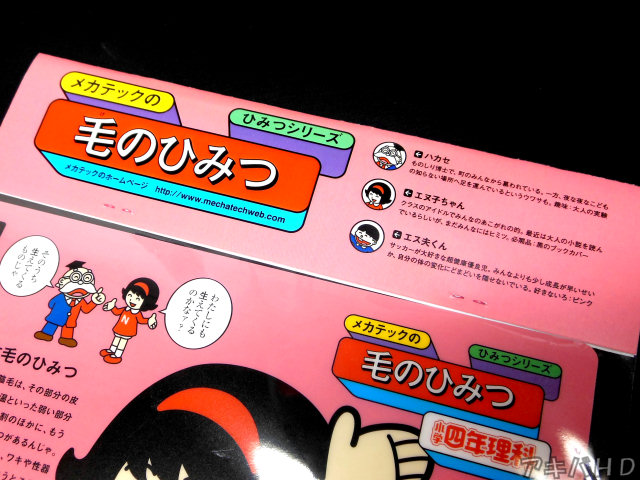 C83で入手した同人グッズ?を紹介します。サークル・MechaTechが頒布していた新刊は「メカテックひみつのしたじき 磁石のひみつ/毛のひみつ」で、『磁石と毛のひみつについて学ぶ、おとなの実験キット』。レビューには『六花ちゃんに毛を生やして遊べる!!お馬鹿過ぎる!!(笑』。 |