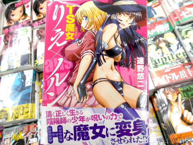 ▲速野悠二氏「TS魔女(ウィッチ)りえ×ノルン」オビ「清く正しく生きる陰陽師の少年が呪いの力でHな魔女に変身させられた!?」