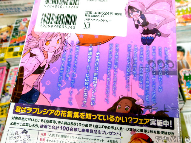 ▲裏表紙ストーリー紹介「TVアニメ本編へと繋がる前日譚!」「――その日私は、無愛想で少し怖い不思議なヒーローに出会ったのです」