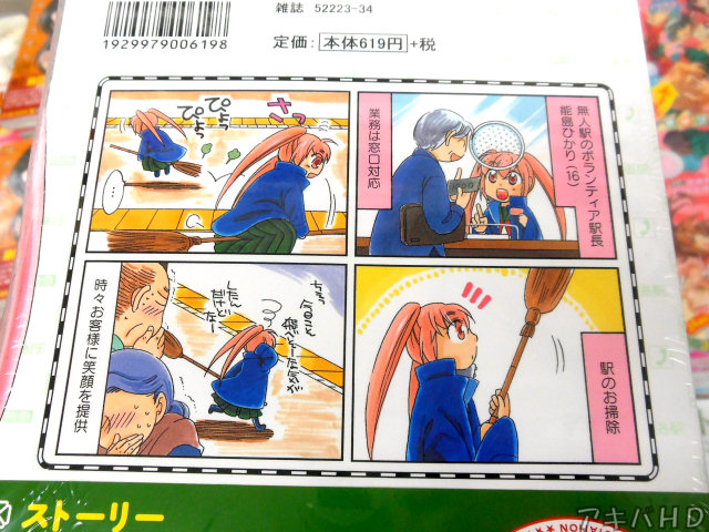 まんがタイムファミリーに連載中の「ひかり!出発進行」1巻が6日発売。水井麻紀子氏による4コマ漫画で、ローカル線のとある無人駅の駅長が女子高生の作品。とらのあなにあったPOPは『これがホントのほっとステーション』『キュートで元気な女子高生駅長のハートフル業務♥』など。 |
