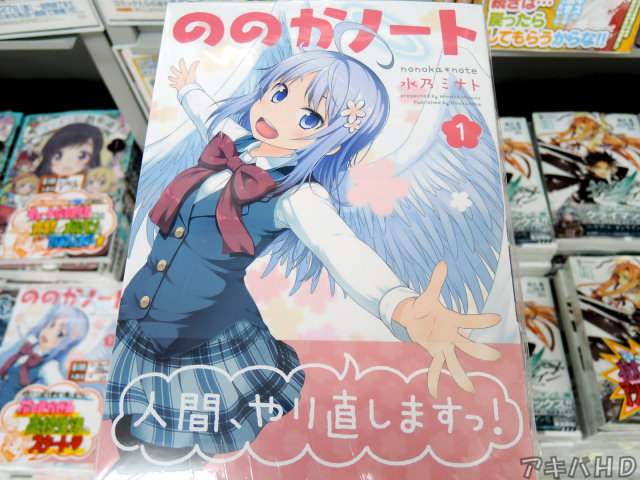 まんがタイムきららキャラットに連載中の「ののかノート」1巻が6月27日発売。水乃ミナト氏による4コマ漫画で、裏表紙側オビでは『ダメダメ天使のドタバタ?ほのぼの?成長記録日記!』。とらのあなのPOPは、『天然ドジっ娘天使が下界に戻されて、花咲かせる高校生活のスタート♥』。 |